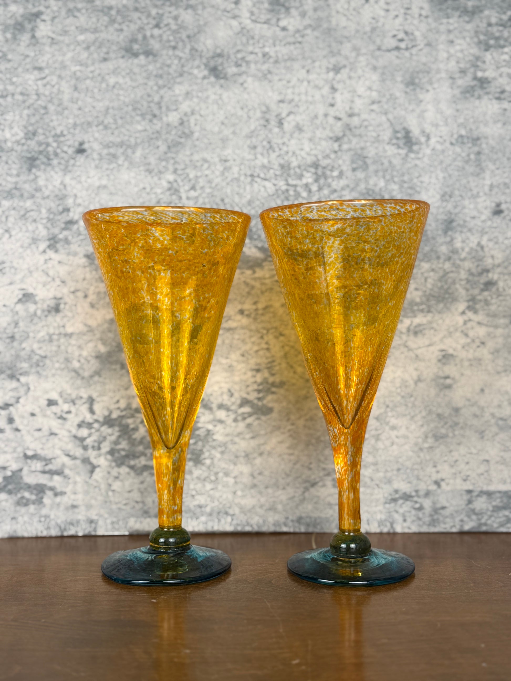 Handblown Orange & Teal Cocktail Glasses, Set of 2 (1990's)