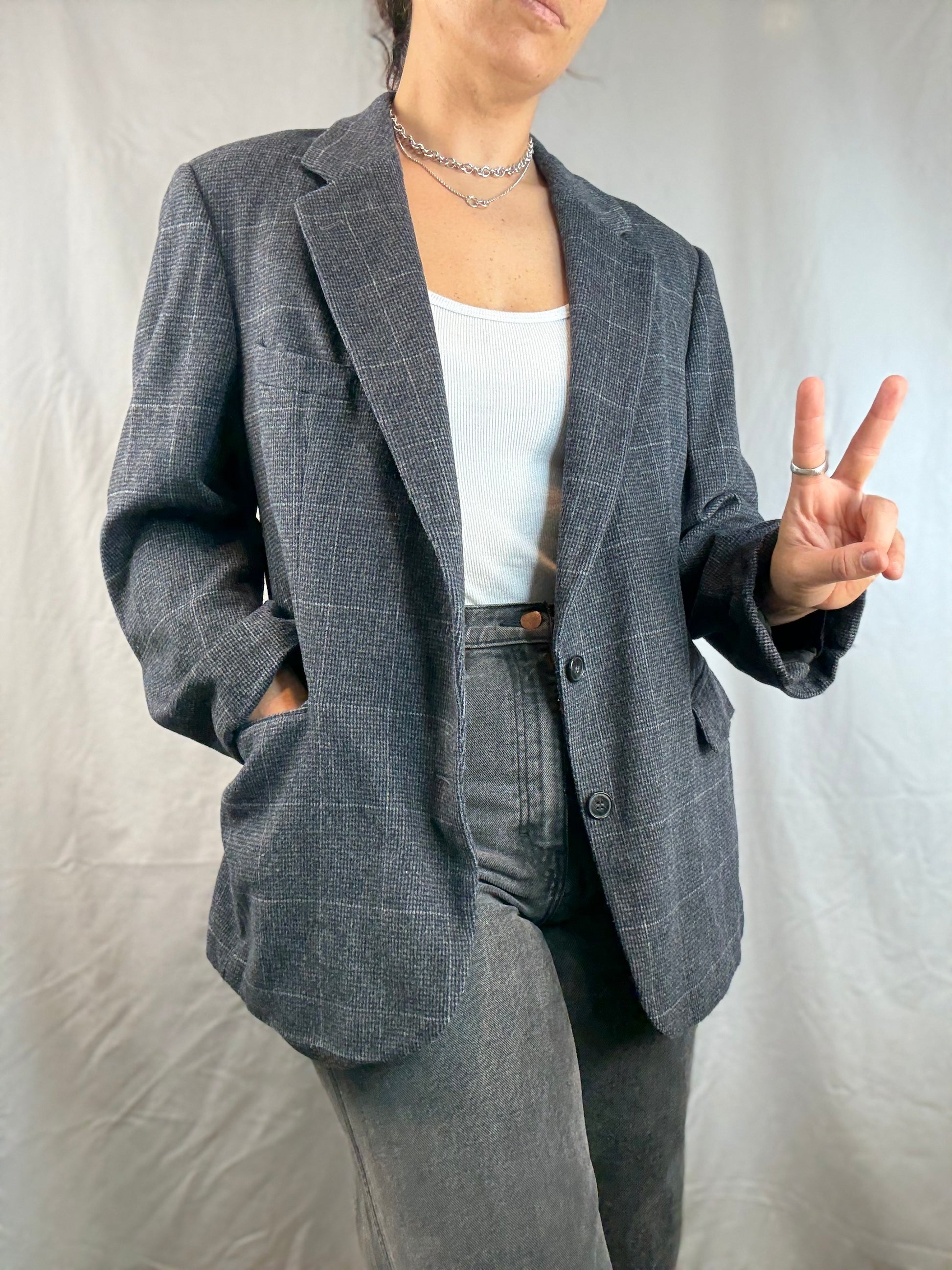 Tag Size: N/A Shoulders: 18" Chest: 21" Waist: 20" Hips: 23" Sleeve Length: 22" Total Length: 29" Best fits: Medium (model is size Medium) |