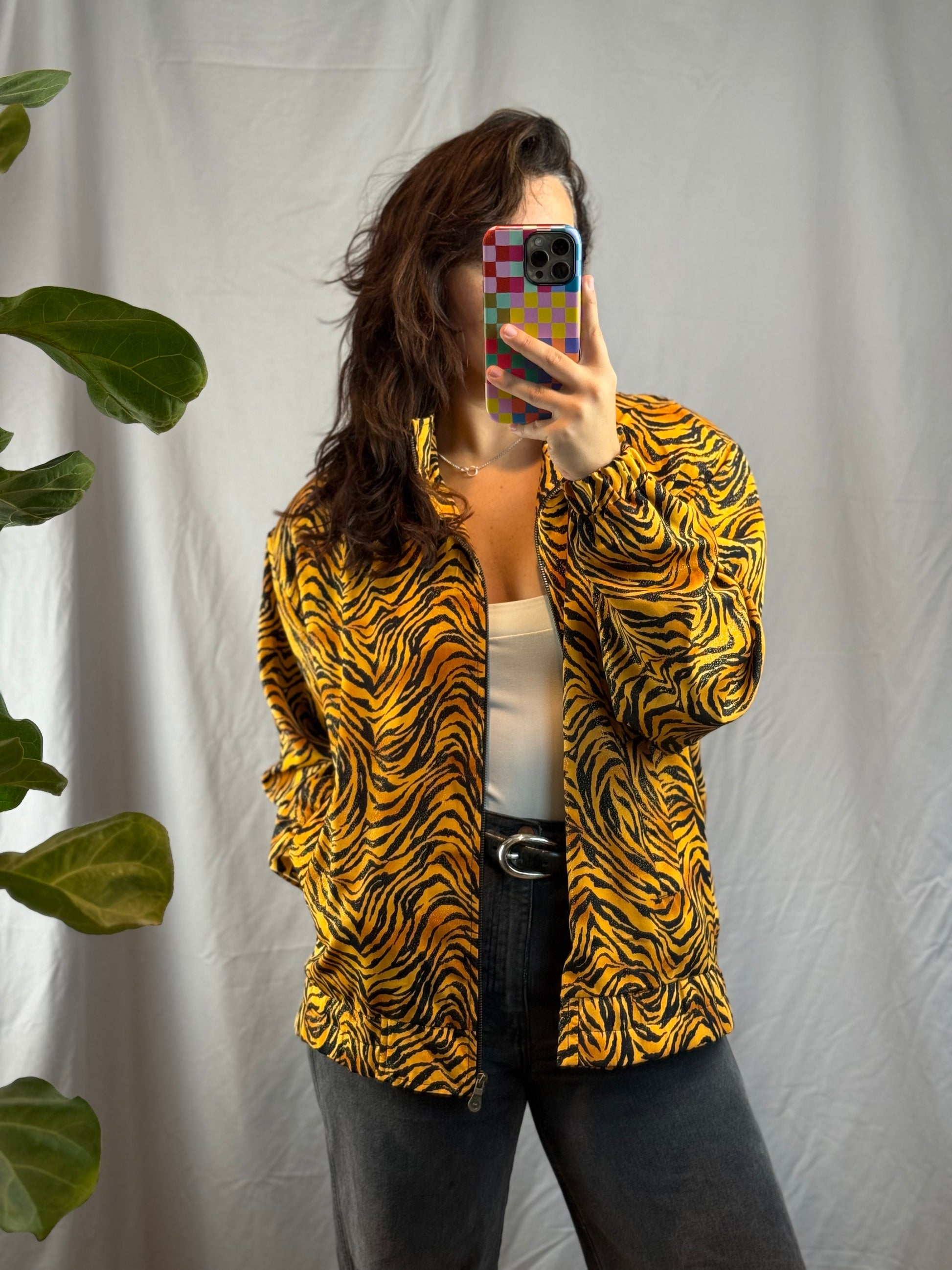 Jackets by Design Sparkly Tiger Print Bomber (80's-90's)