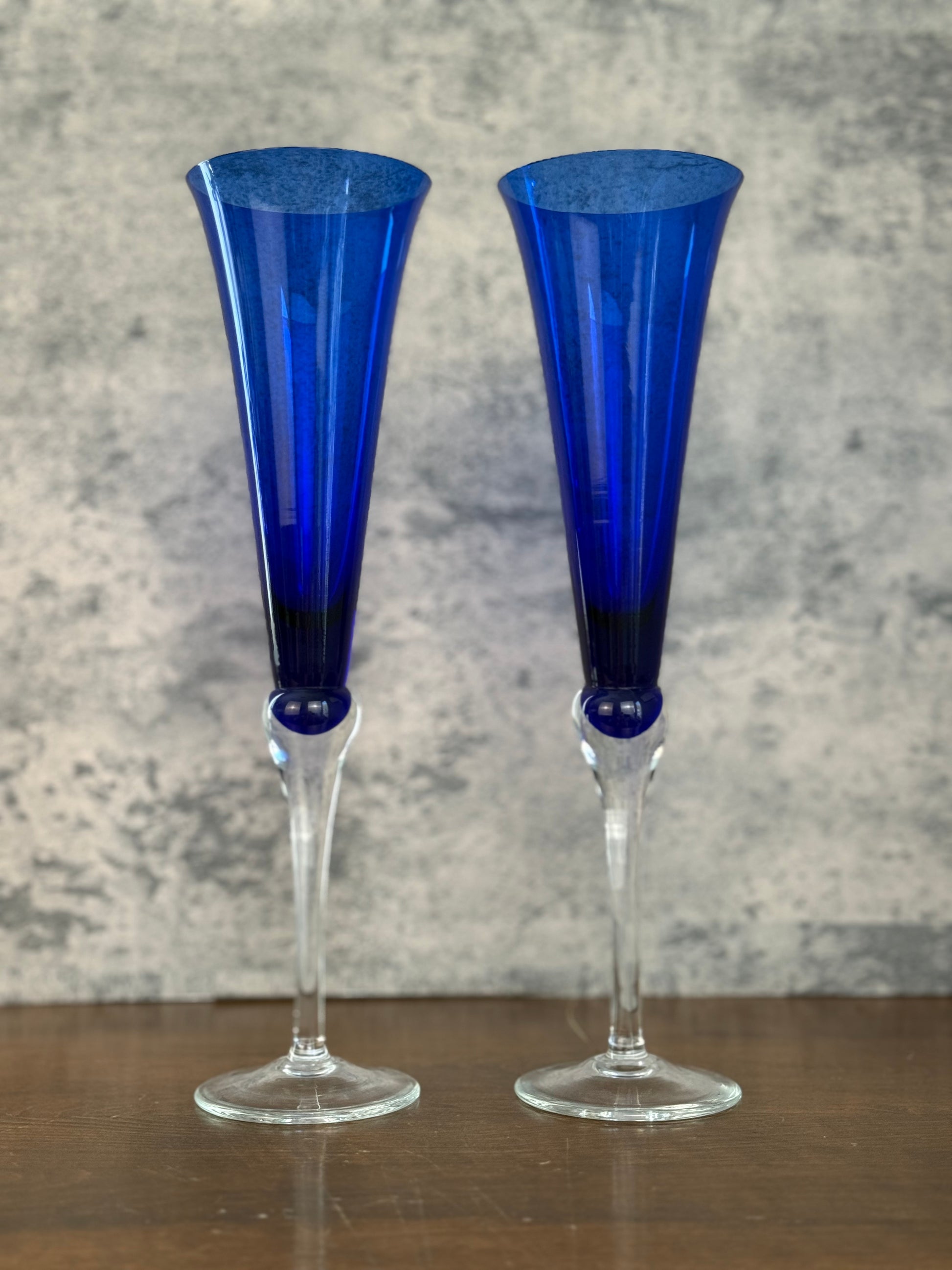 Lenox Holiday Gems Cobalt Blue Champagne Flutes, Set of 2 (1990's-Y2K)