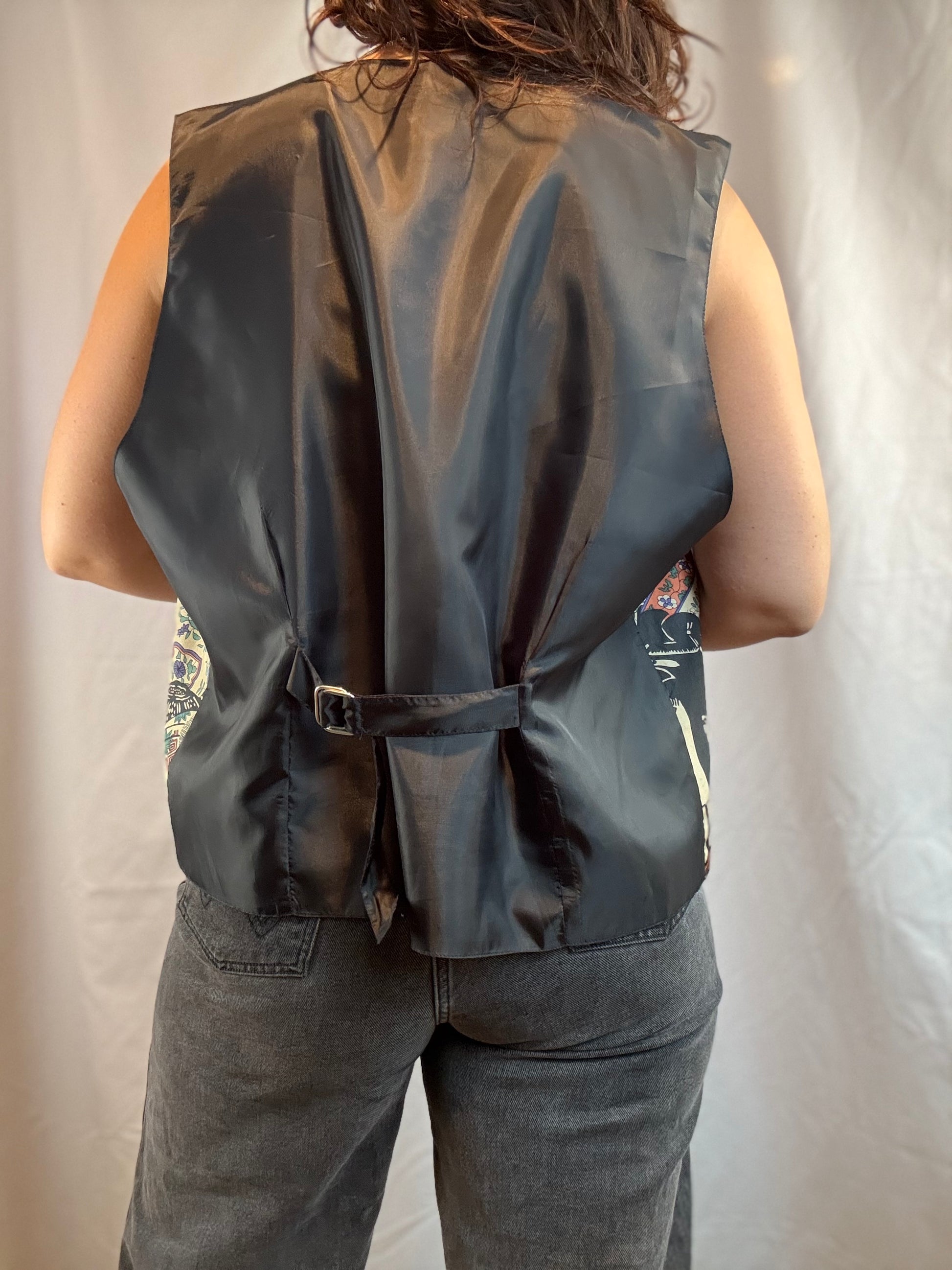 | Notes | 4 button-front closure; print only on front, black is solid black silk; vest cinch/back waist adjuster |